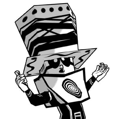 A huge spiral had been draw over the top of the hat.